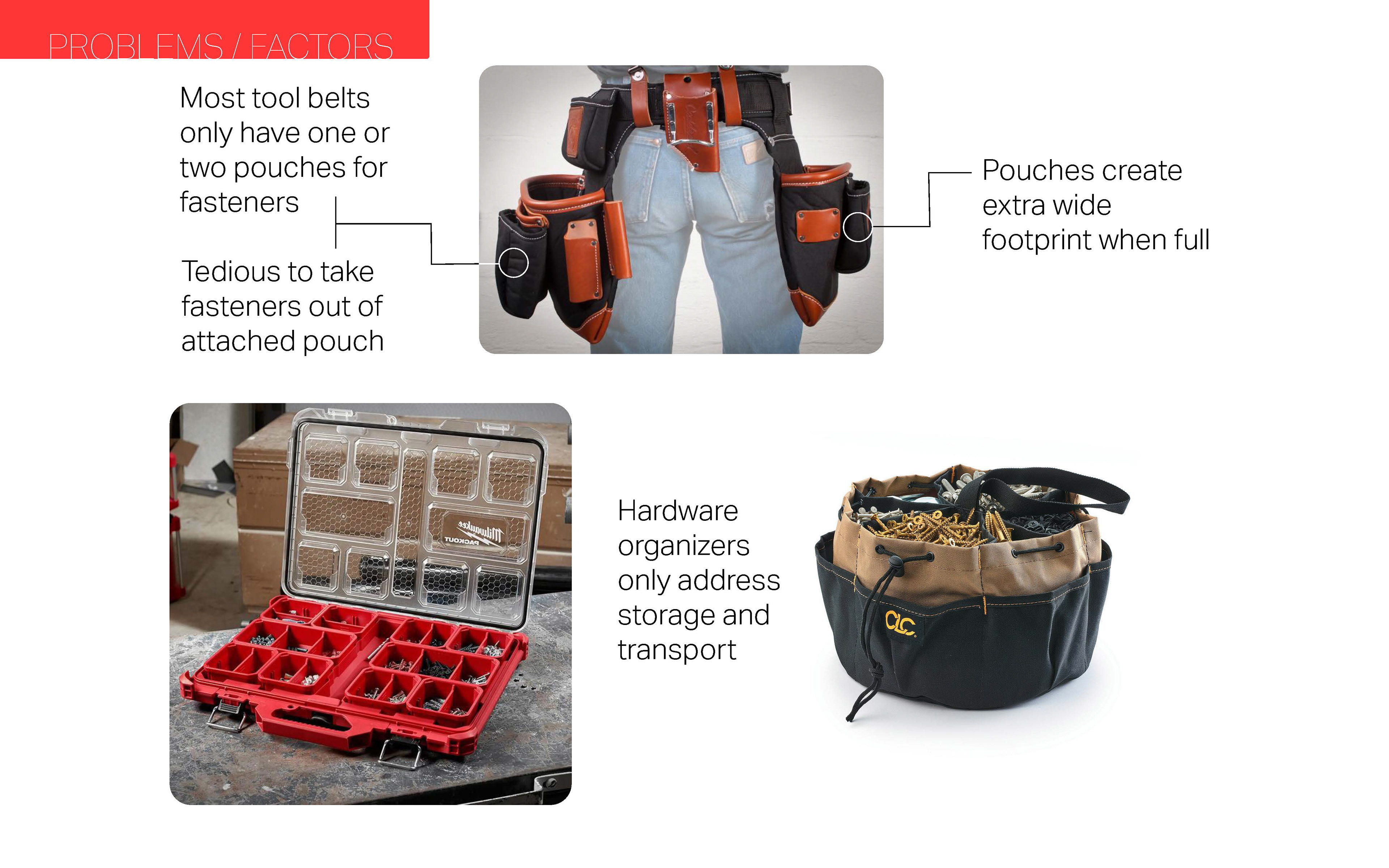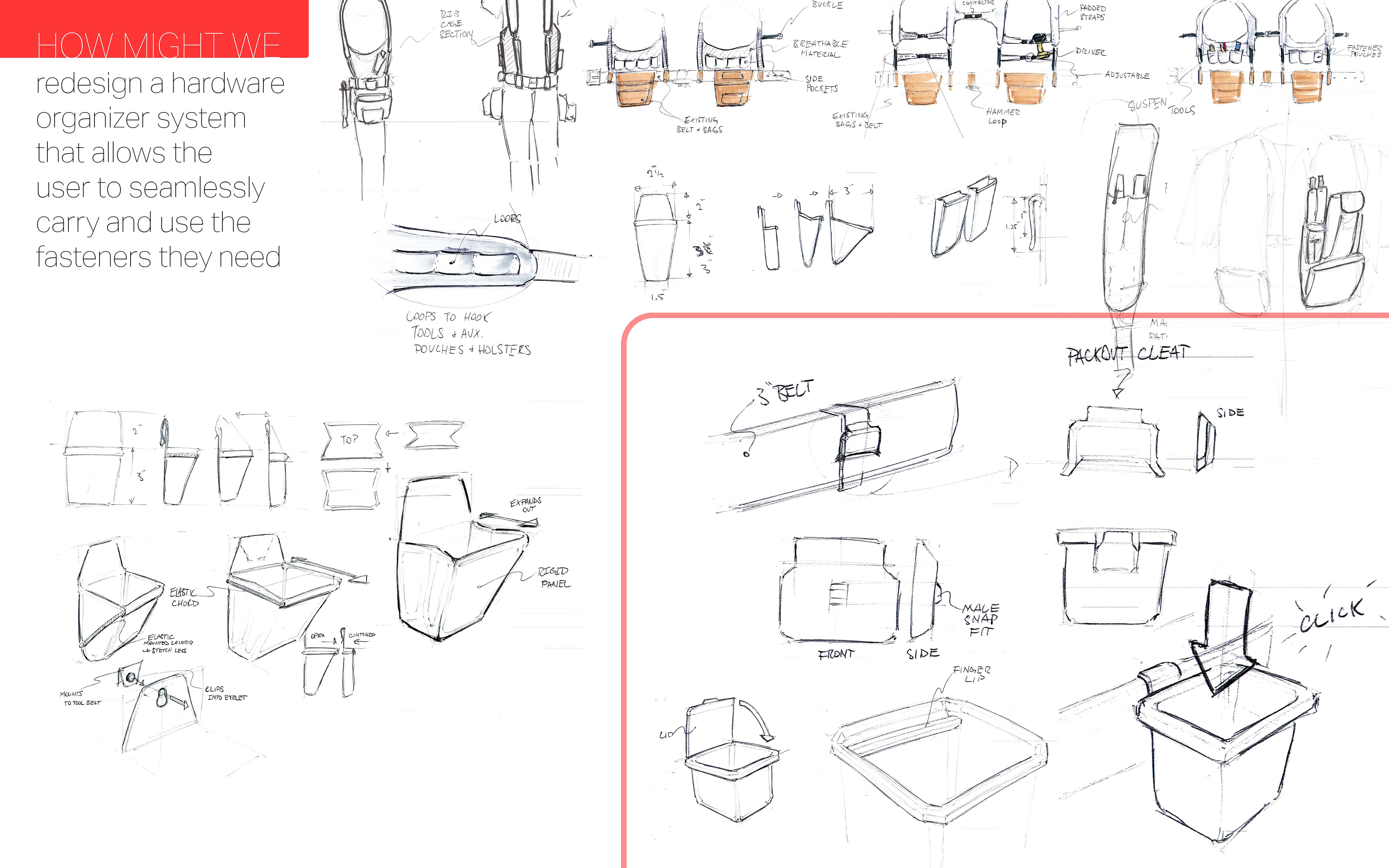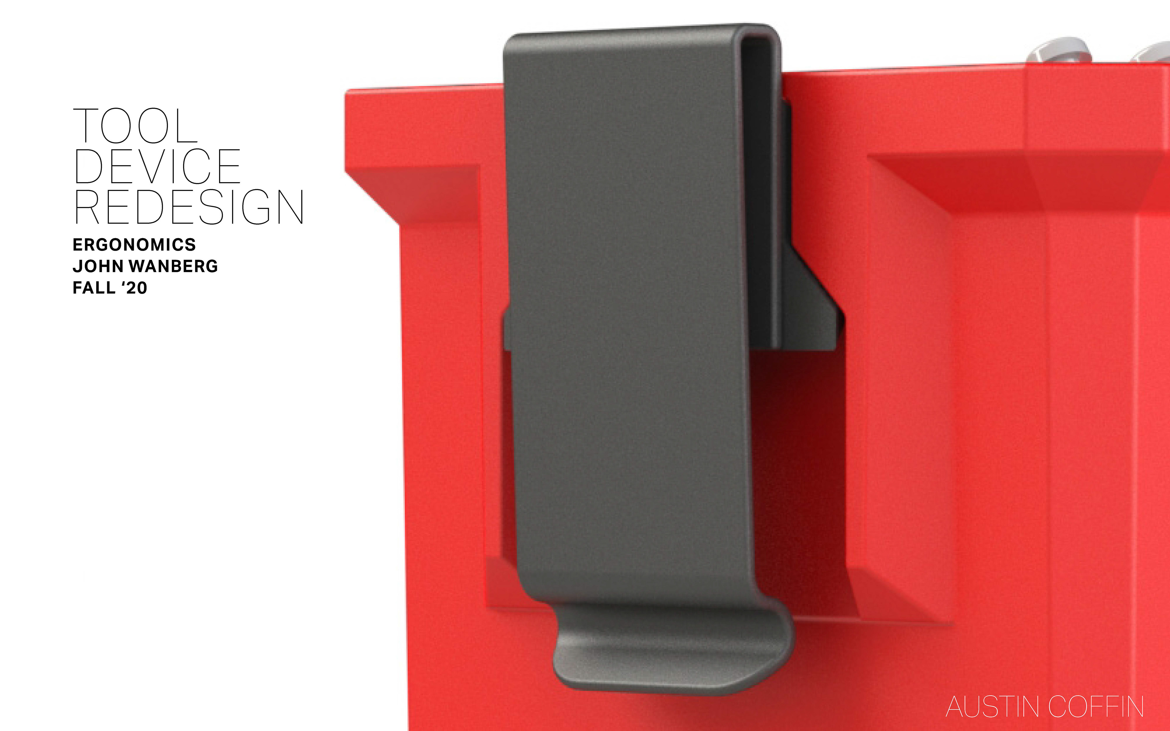 The goal for this project was to take an existing product and add/improve functionality with an emphasis on ergonomics. I was able to utilize my experience in construction to have a deeper understanding of the problems of tradespeople face.