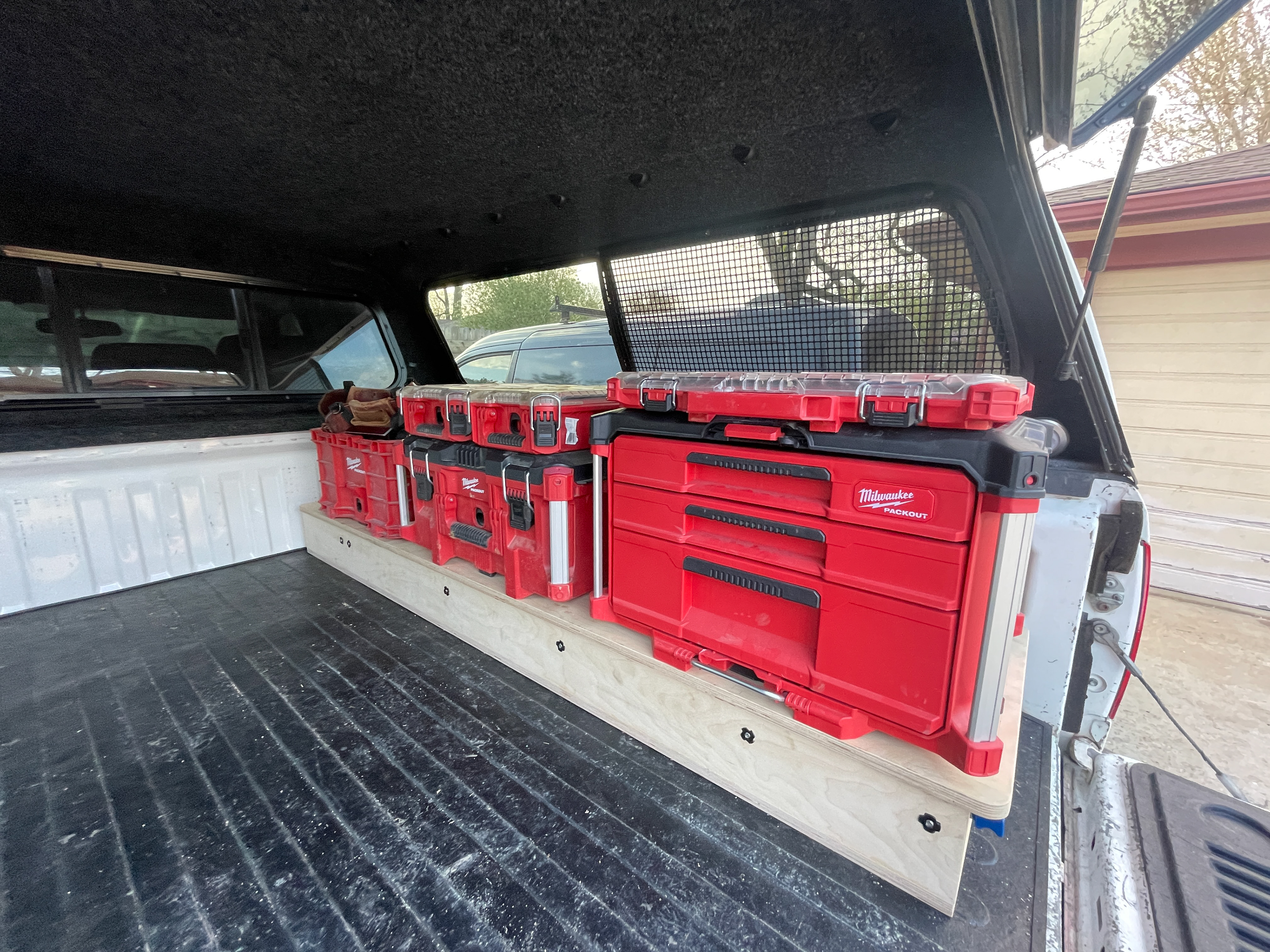 This client (me) needed a solution for efficiently switching between tools for work and gear for trips and adventures. It was important to still maintain a section of the truck bed to fit a twin mattress.
